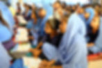 The children listen to the lecture on nutrition education with attentive eyes.